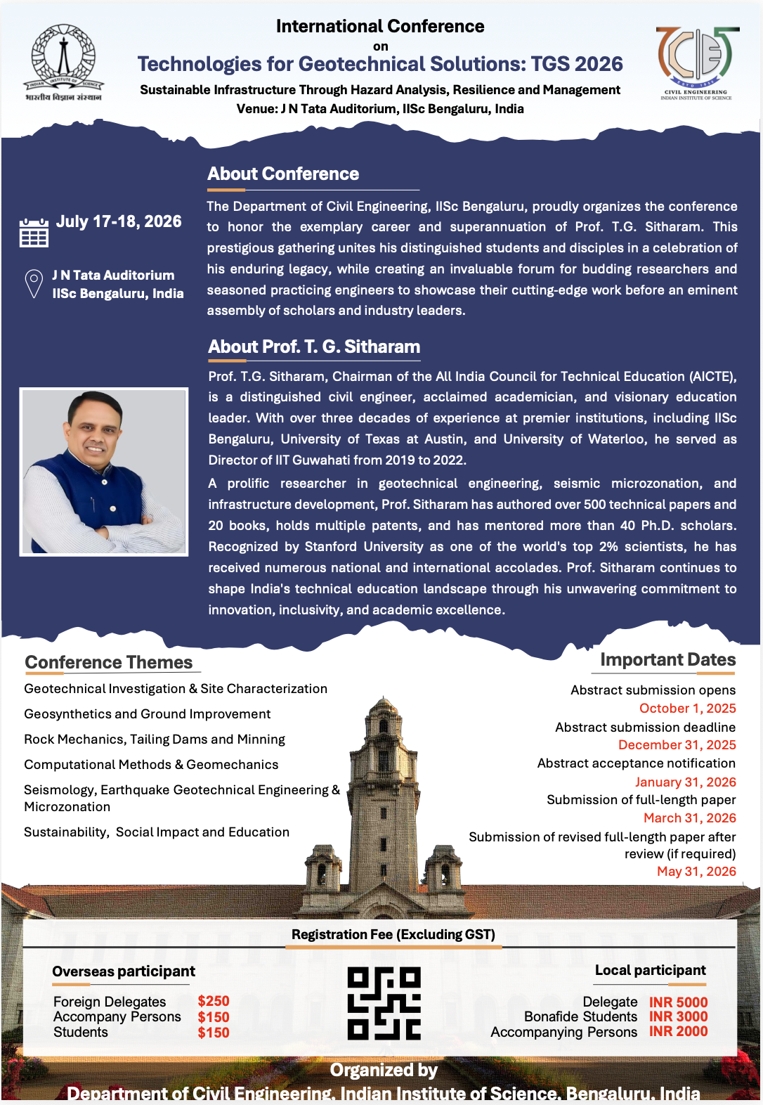 Since joining IIT Hyderabad in 2010, Dr. Saride has been actively engaged in various research activities. He is currently involved in developing design guidelines for geosynthetic-reinforced flexible pavements and recycled materials. His valuable work in this area has been recognized through research grants from prestigious organizations such as the National Highway Authority of India (NHAI) and the National Technical Textiles Mission, Ministry of Textiles. These grants are expected to support his research projects for the next four years. In addition to his research endeavors, Dr. Sireesh Saride holds key leadership roles at IIT Hyderabad. He leads the newly funded Centre of Excellence on the 'Transportation Research and Innovation Hub (TRI HUB)' by NHAI, demonstrating his expertise in transportation research. Dr. Saride published over 240 referred journals, conference articles, and technical reports. He has also assumed editorial responsibilities as an Associate Editor for the Journal of Materials in Civil Engineering, ASCE, and the Indian Geotechnical Journal, IGS.Dr. Sireesh Saride is a member of several professional societies, including the American Society of Civil Engineers (ASCE), the Institution of Civil Engineers (ICE), the Transportation Research Board (TRB), and the International Geosynthetics Society. He is a life member of the Indian Roads Congress (IRC) and a fellow of the Indian Geotechnical Society.